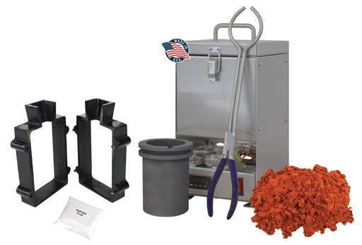View full details100 Oz QuikMelt TableTop Furnace Sand Casting Set with Petrobond, Tongs, Crucible, Cast Iron Mold Flask Frame, Parting Powder, & Flux
