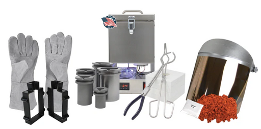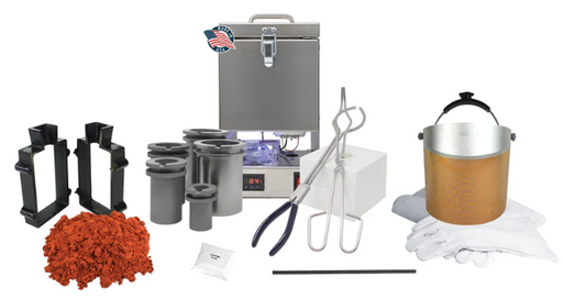 View full detailsDeluxe TableTop QuikMelt Furnace & Sand Casting Set with Safety Gear, Petrobond, Mold Frame, Stir Rod, Crucibles, Flanges, Flux, & Parting Powder